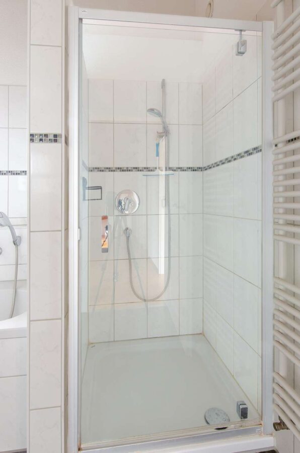Ergänzt wird diese Ebene durch einen sehr geräumigen Eingangsbereich sowie ein modernes Duschbad mit WC.