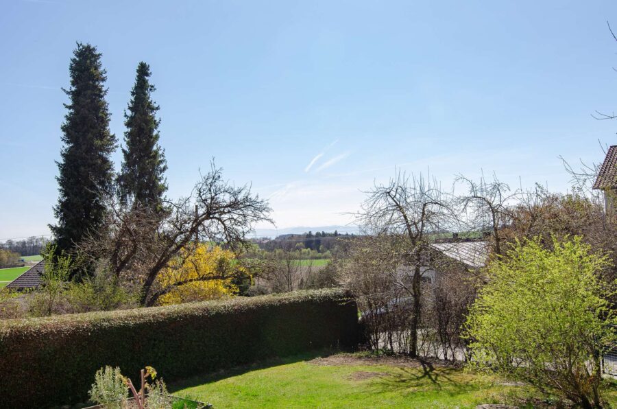 Diese ansprechende Doppelhaushälfte mit 3,5 Zimmern aus dem Baujahr 2006 überzeugt durch ihr sonniges, ca. 530 m² großes Grundstück sowie einen traumhaften Ausblick bis in die Berge.