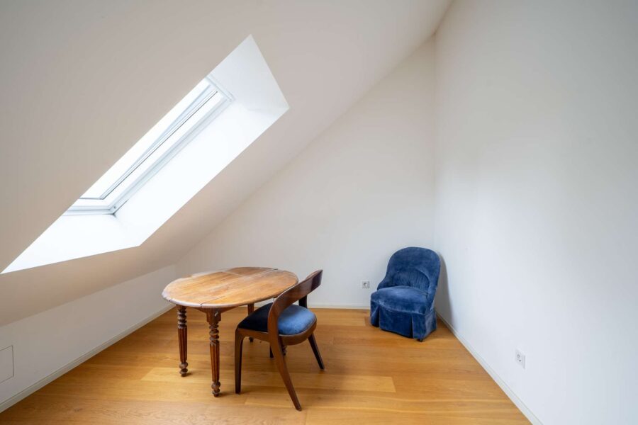 Ein weiterer Höhepunkt dieses Hauses ist das große Studio im Dachgeschoss mit zwei großen Dachgauben, einem separaten Ankleideraum und einem modernen Badezimmer mit zwei Tageslichtfenstern, WC, Waschtisch und ebenerdiger Dusche.