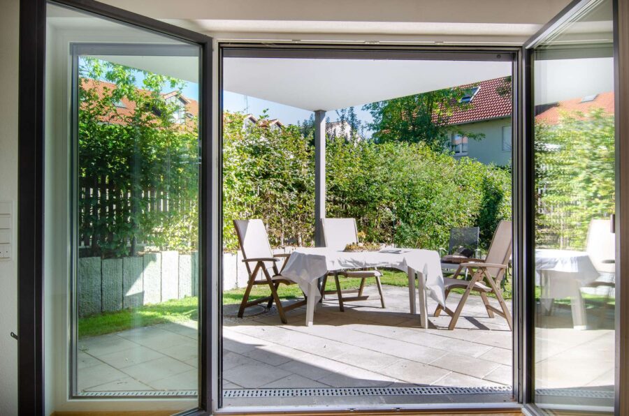 Hinzu kommen zwei helle Schlaf- und Arbeitszimmer, welche ebenfalls Zugang in den Nordgarten bieten, ein modernes und barrierefreies Bad sowie ein praktisches Gäste-WC.