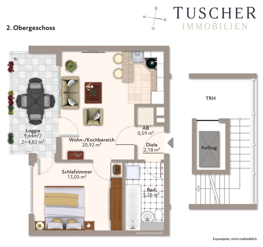 Zur Wohnung gehören ein TG-Stellplatz und ein Kellerabteil.