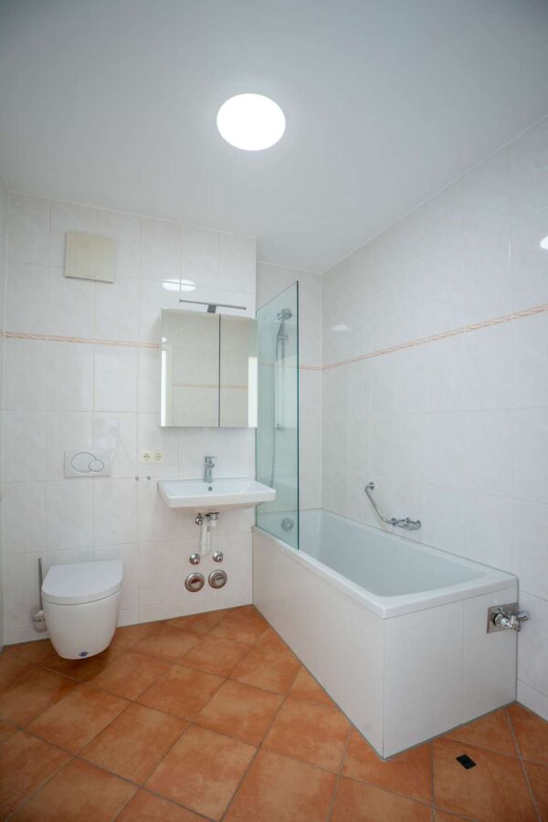 Auch das Bad wurde mit einer neuen Wanne, WC und Einzelwaschbecken auf einen modernen Standard gehoben.